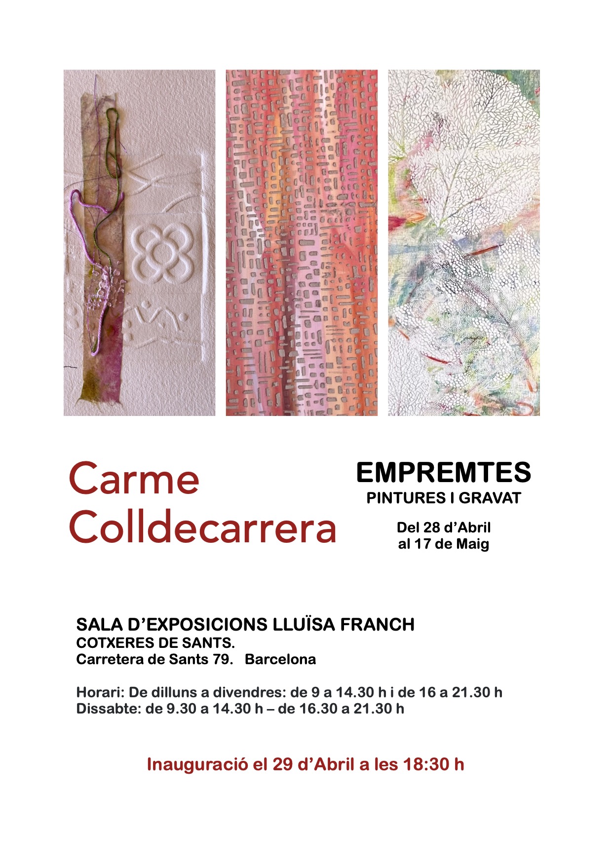 Empremtes del 29/4 al 17/5 Cotxeres de Sants. Publicado porcarmecolldecarrera2 de mayo, 20252 de mayo, 2025Publicado en Destacats, ExposicionsEtiquetas:“exposicions a Barcelona” “gravat” “pintura” “art conte Comparte esto: Haz clic para compartir en X (Se abre en una ventana nueva) X Haz clic para compartir en WhatsApp (Se abre en una ventana nueva) WhatsApp Haz clic para enviar un enlace por correo electrónico a un amigo (Se abre en una ventana nueva) Correo electrónico