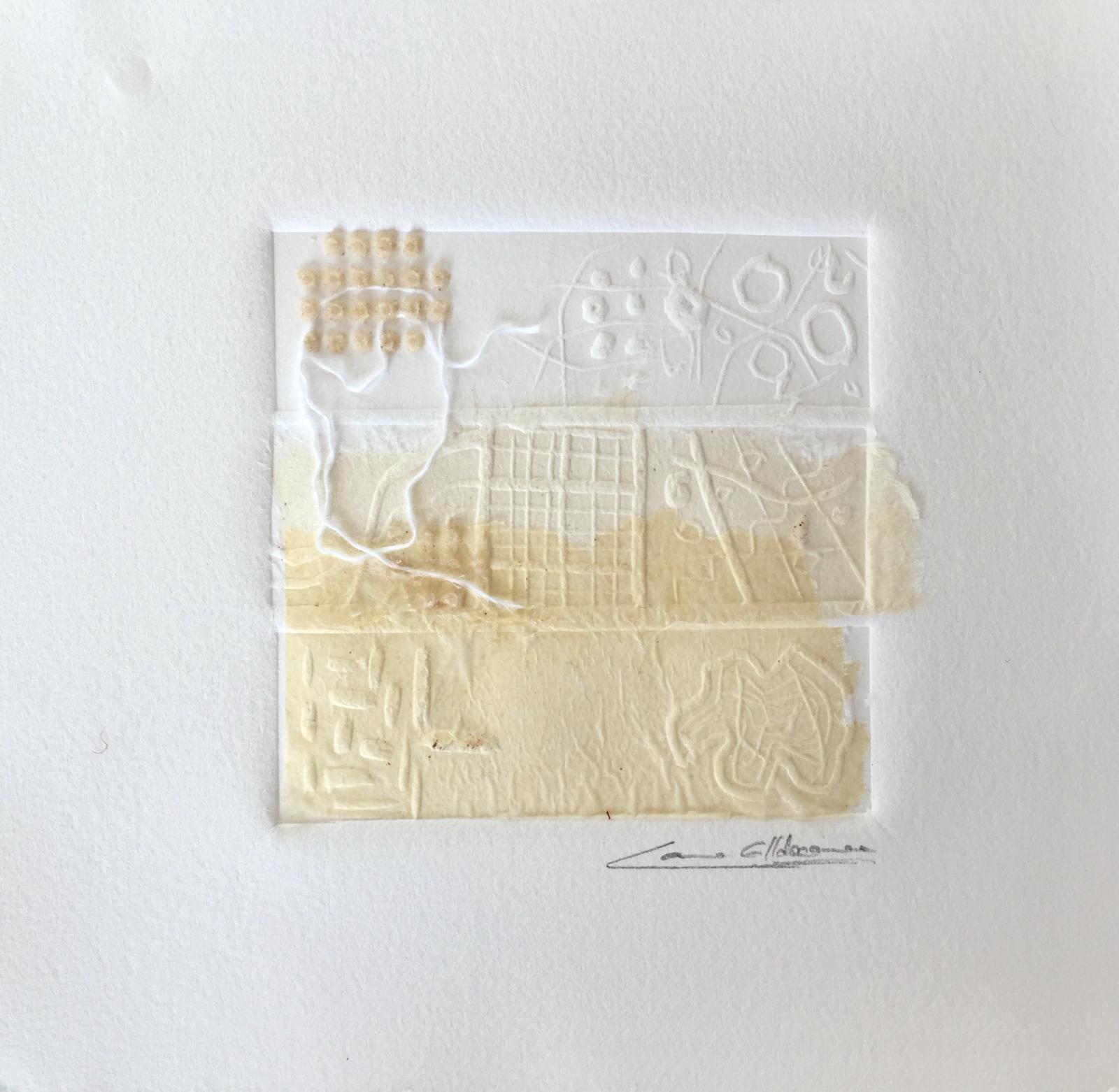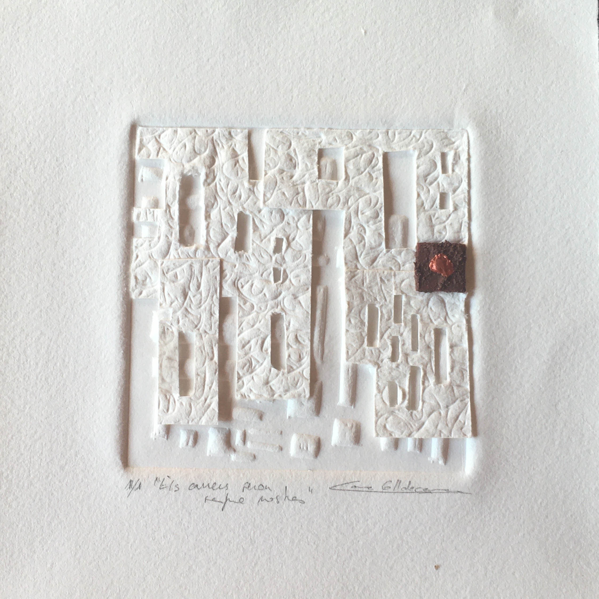 Gravats sobre paper Hahnemuhle de 300g mida 25x25cm. A partir de l’exposición “Ara mateix enfilo aquesta agulla” hi he incorporat els fils.