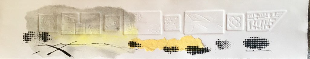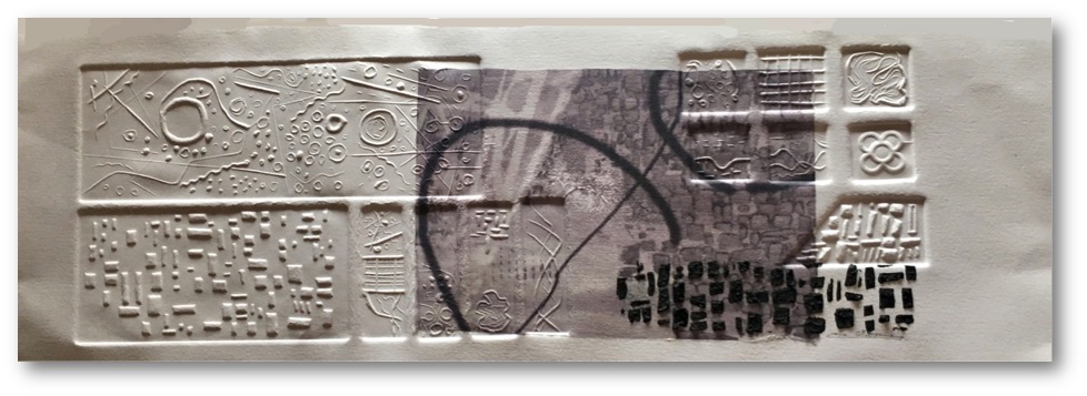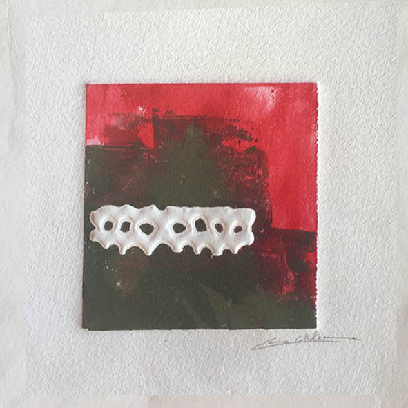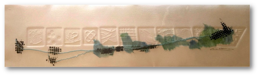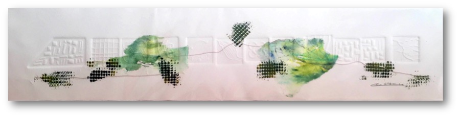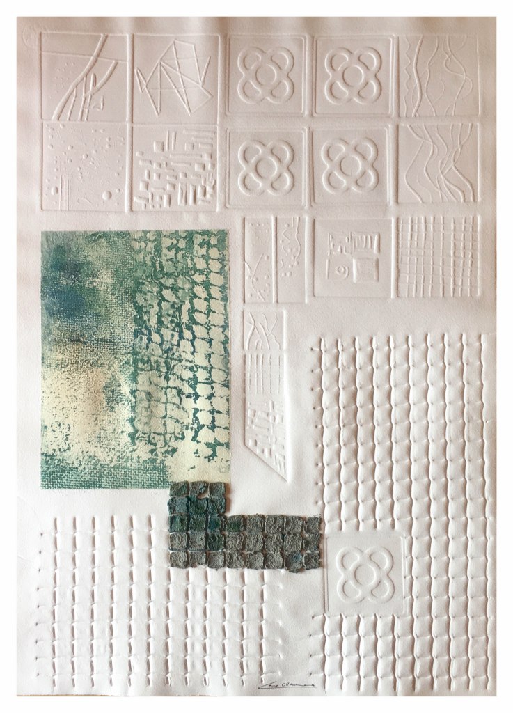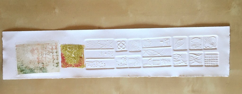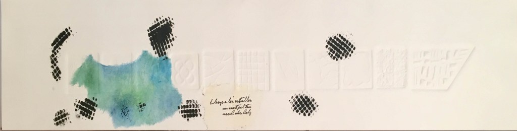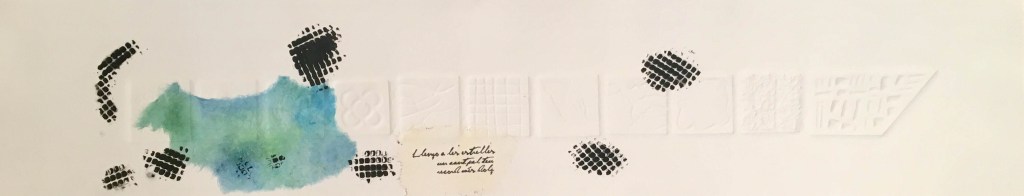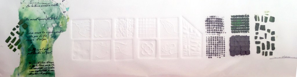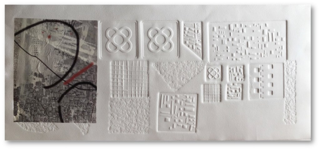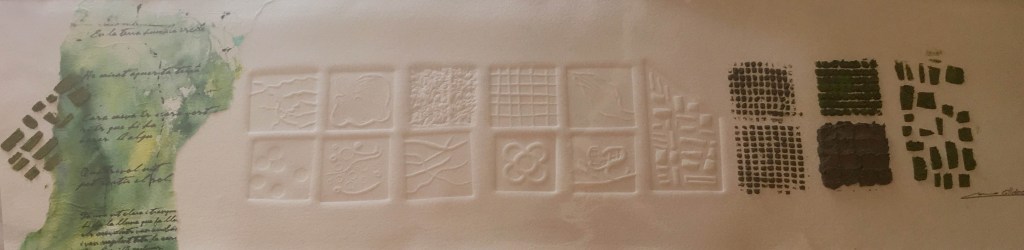 Utilitzo planxes de diverses mides, petites 10×10 cm 5×5 cm i més grans 20 x15cm etc.. per combinar-les en diferents posicions i crear monotips, obres úniques i irrepetibles.