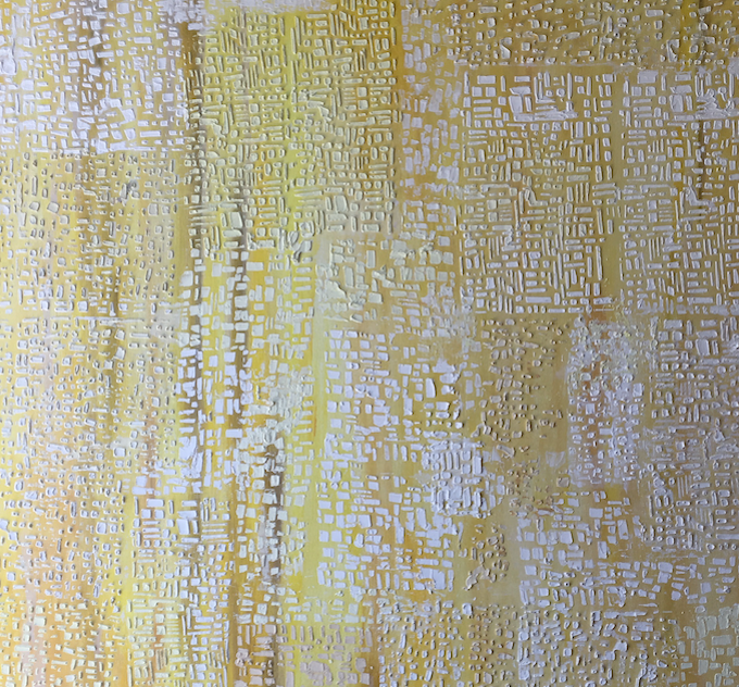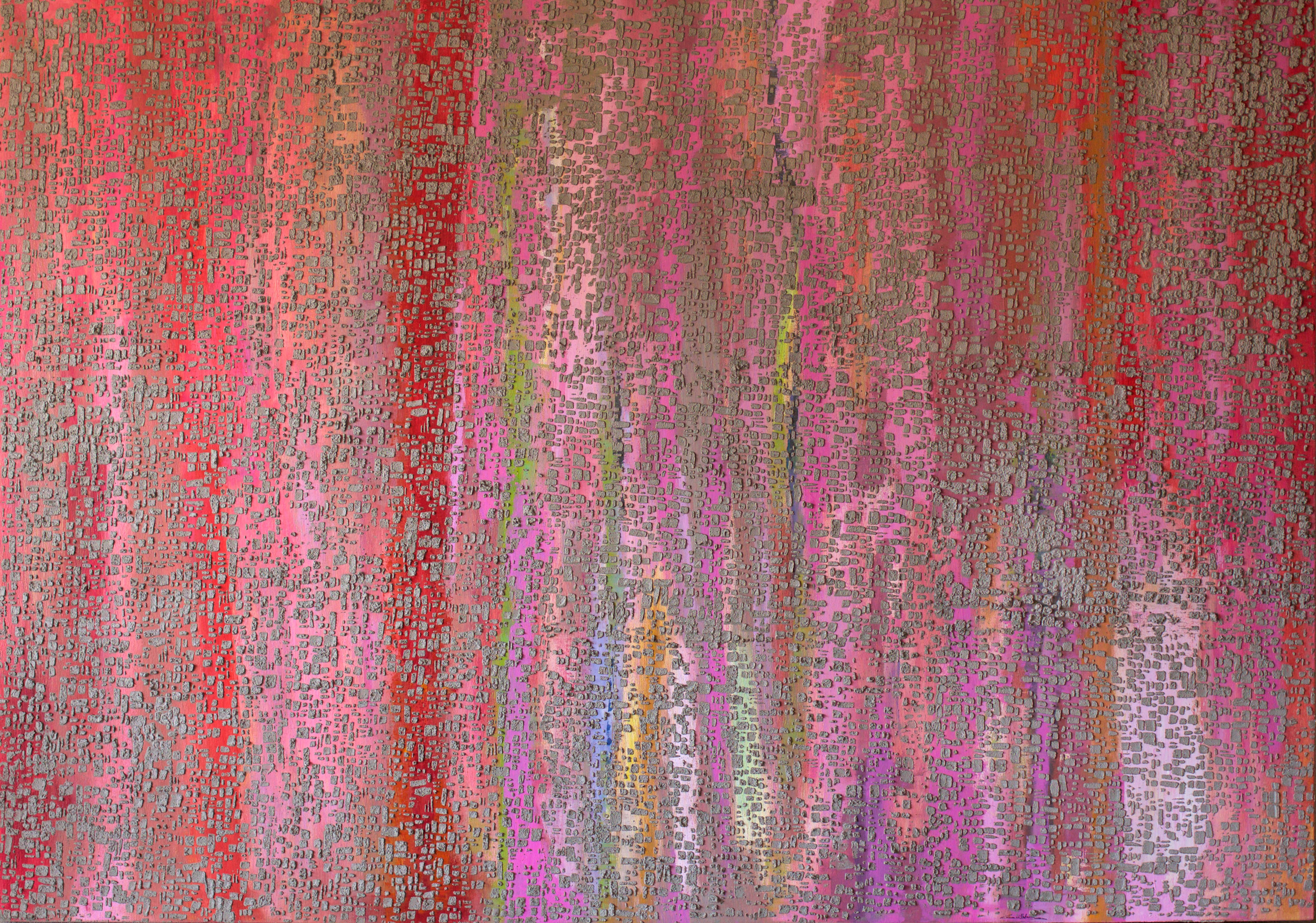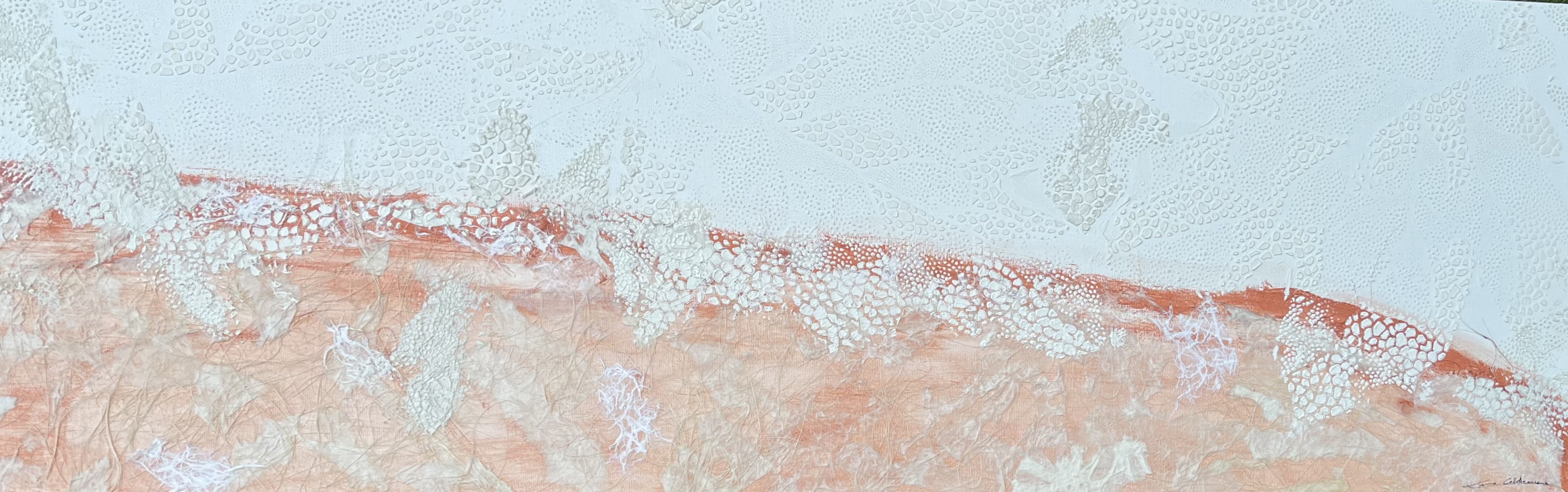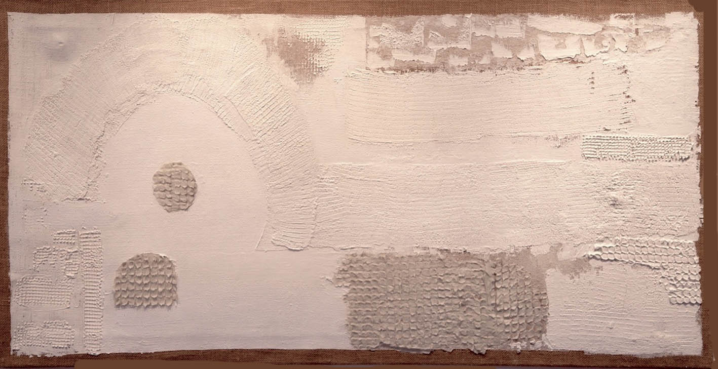 Tota la meva obra parteix de les TEXTURES de la TERRA.Està inspirada en les fotografies del llibre «La Terra des de l’aire» de Yann Arthus Bertrand. He fet abstraccions de les fotografies i composicions de planos i mapes.També he partit del poema de Salvador Espriu «He mirat aquesta terra» i de la música d’en Raimon. El material que utilitzo i que dona volum i textura a la meva obra és principalment el ciment . Utilitzo la pintura acrílica, picments i oli. Sobre tela, fusta o paper.