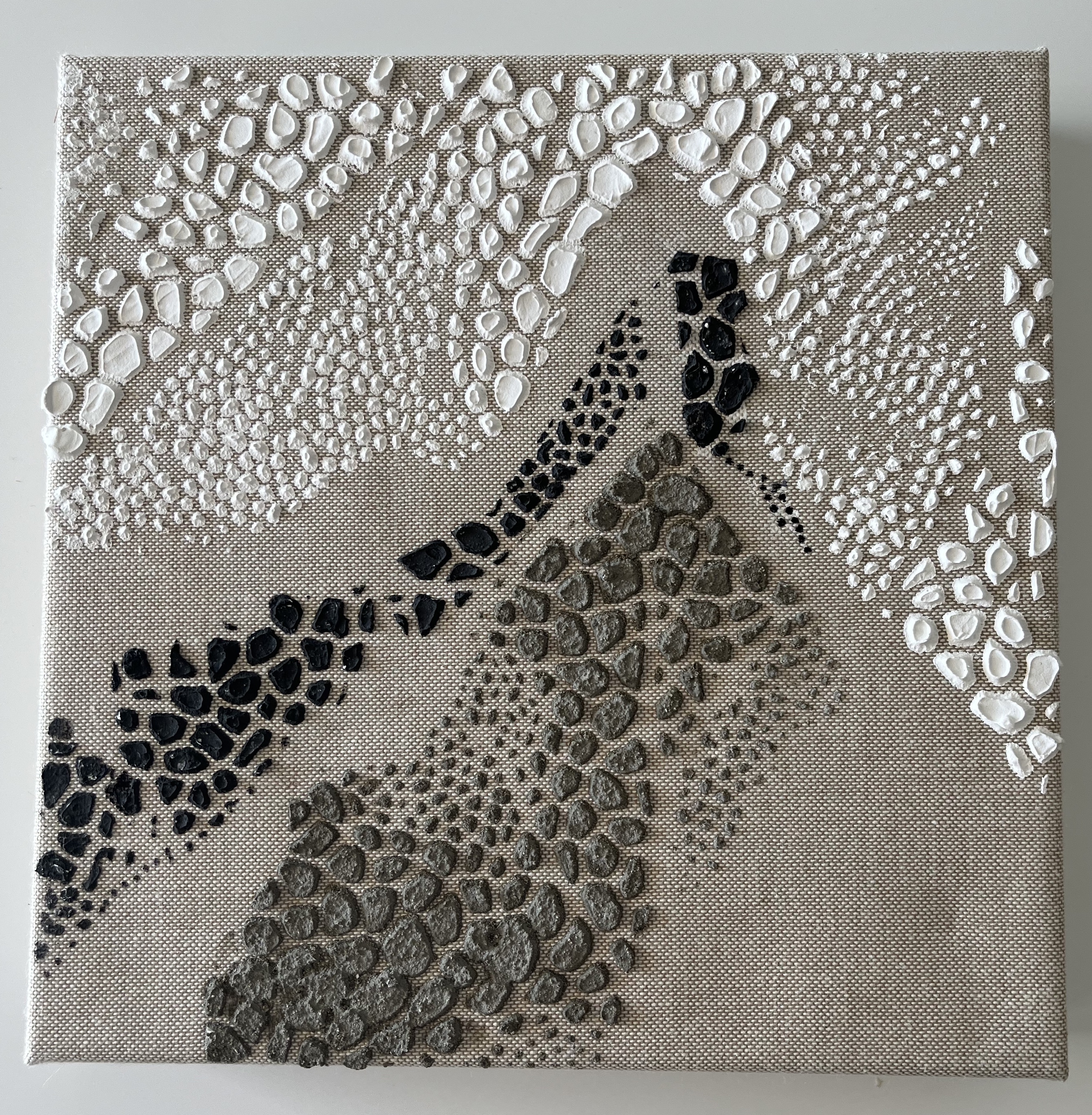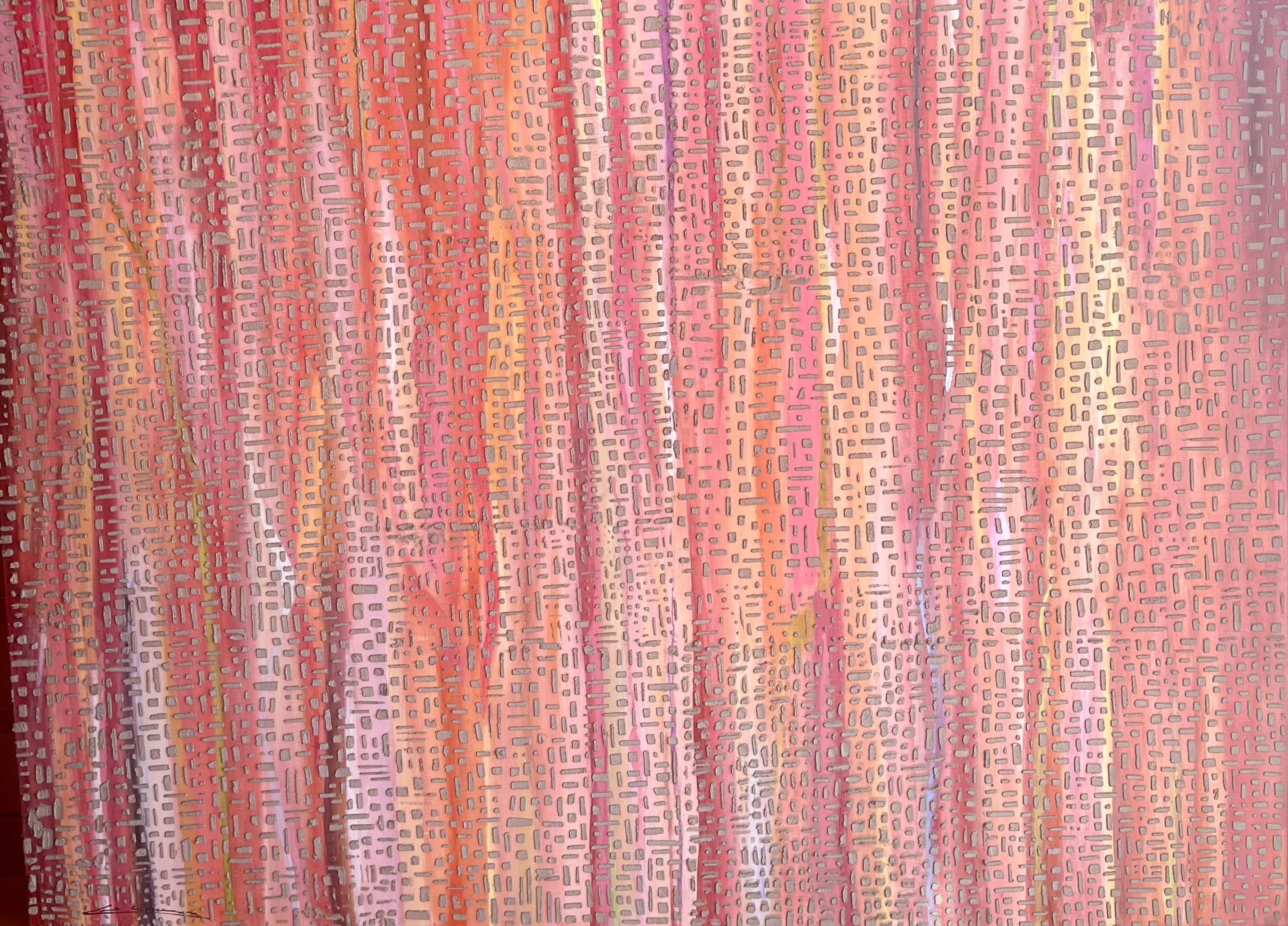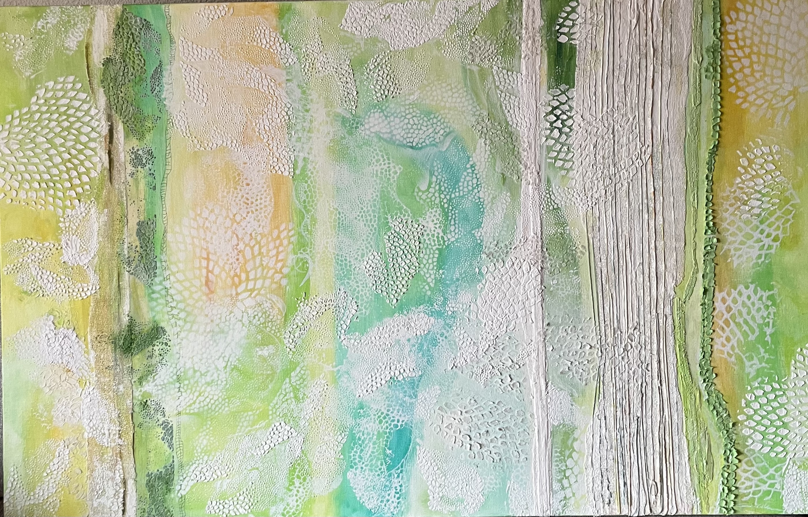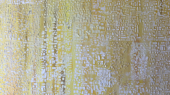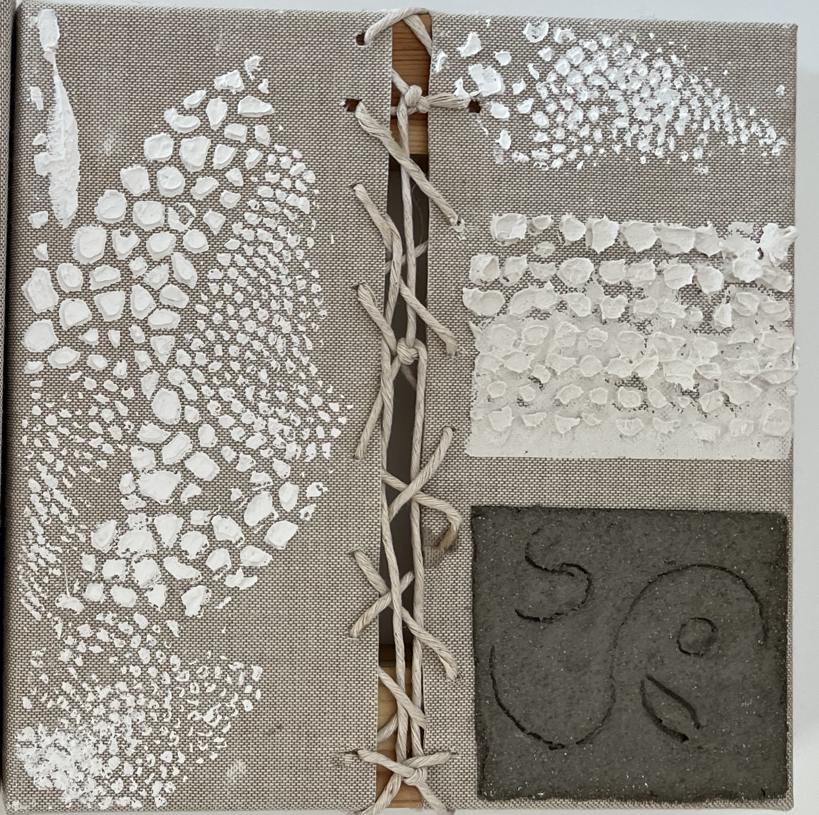 Tota la meva obra parteix de les TEXTURES de la TERRA.Està inspirada en les fotografies del llibre «La Terra des de l’aire» de Yann Arthus Bertrand. He fet abstraccions de les fotografies i composicions de planos i mapes.També he partit del poema de Salvador Espriu «He mirat aquesta terra» i de la música d’en Raimon. El material que utilitzo i que dona volum i textura a la meva obra és principalment el ciment . Utilitzo la pintura acrílica, picments i oli. Sobre tela, fusta o paper.